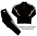 Product Name: Men's Side Stripe 4 Way Lycra Track Suit Package Contains: It Has 1 Piece Of Tracksuit Fabric: 4 way polyester Color: Black Pattern: Side Stripe Fit: Regular Sleeves Type: Full Sleeves Closure: Zip up Length (in Inches): 26 Bottom Type: Track Suit Occasion: Casual Combo: Pack of 1 Ideal For: Men Weight: 450