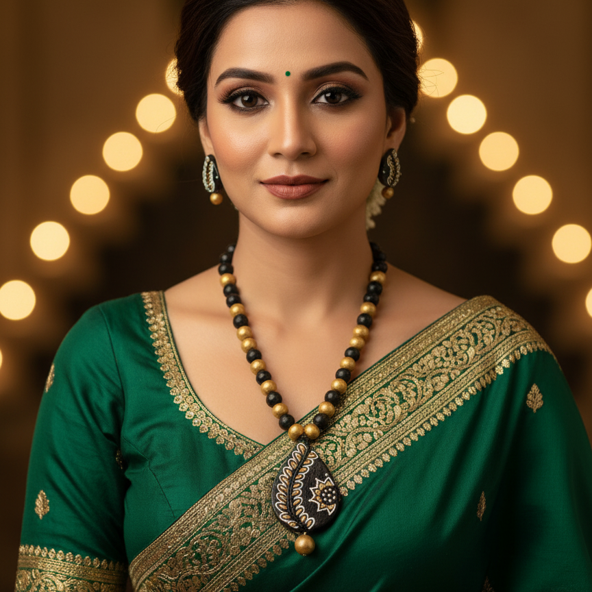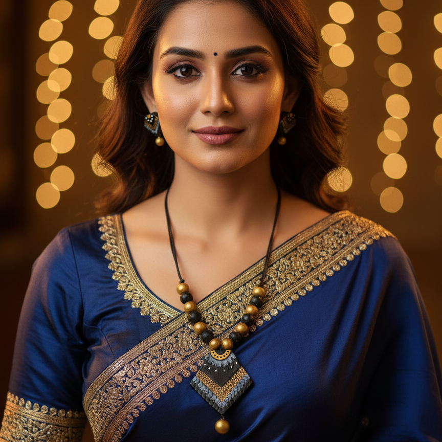 Terracotta Jewelry Necklace Set for Women β Handcrafted Clay Necklace with Earrings